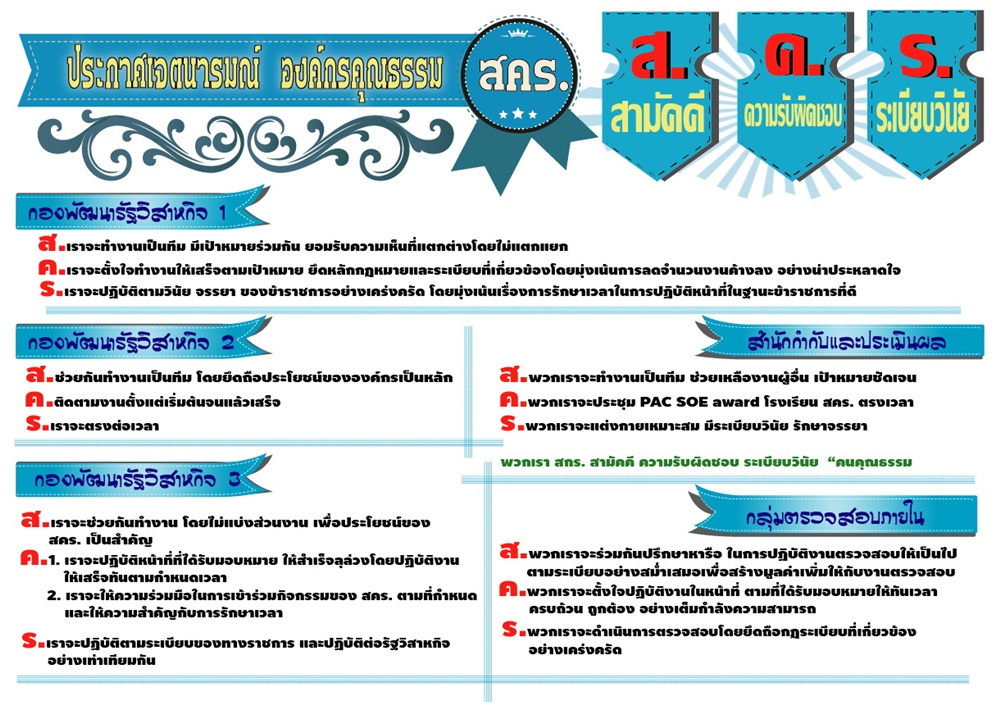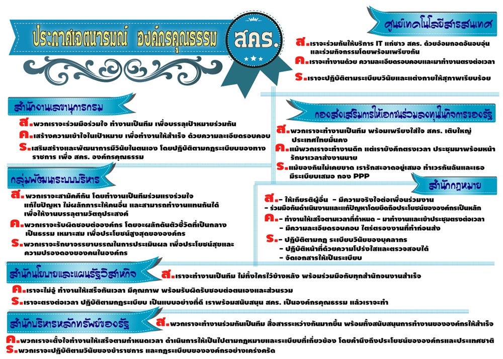 การประกาศเจตนารมณ์องค์กรคุณธรรมของ สคร.