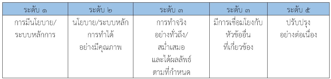 การประเมินผลการดำเนินงานที่ระบุว่า “ทำจริงอย่างทั่วถึง/สม่ำเสมอ” และ “มีการปรับปรุงอย่างต่อเนื่อง” มีแนวทางในการพิจารณา ดังนี้