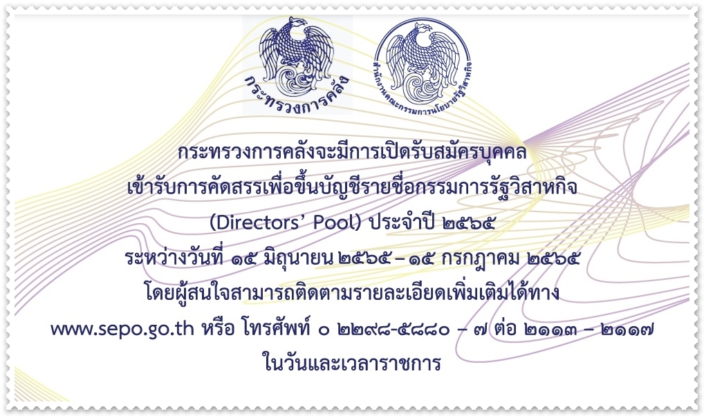 กระทรวงการคลังจะมีการเปิดรับสมัครบุคคลเข้ารับการคัดสรรเพื่อขึ้นบัญชีรายชื่อกรรมการรัฐวิสาหกิจ